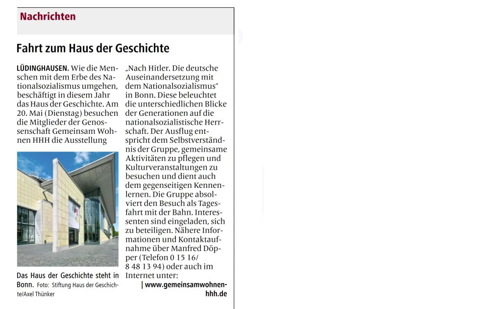 Fahrt zum Haus der Geschichte. WN 5.5.25