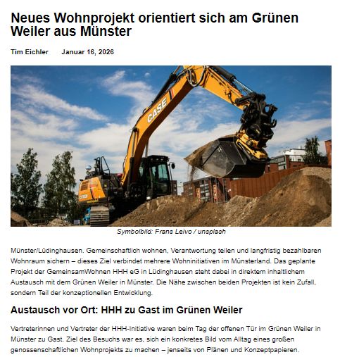 Neues Wohnprojekt orientiert sich am Grünen Weiler aus Münster. MSaktuell am 16.1.26