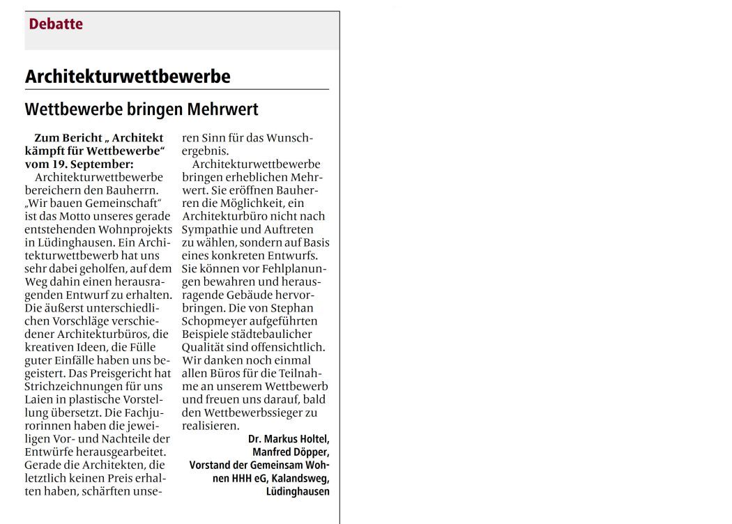 Wettbewerbe bringen Mehrwert. Leserbrief in den WN 7.10.25